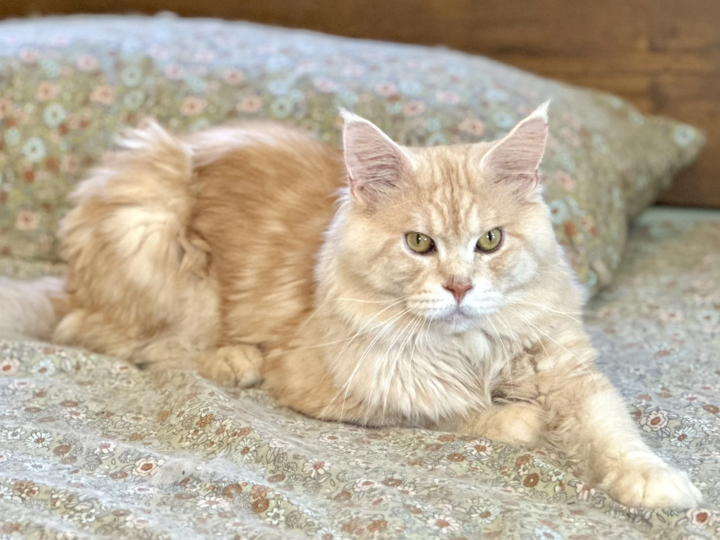Behind his powerful look is a calm, affectionate soul. Quinton is incredibly gentle, loving, and easygoing, with that classic Maine Coon temperament we adore. He brings both elegance and warmth to our family, combining impressive structure with a soft, kind nature.
